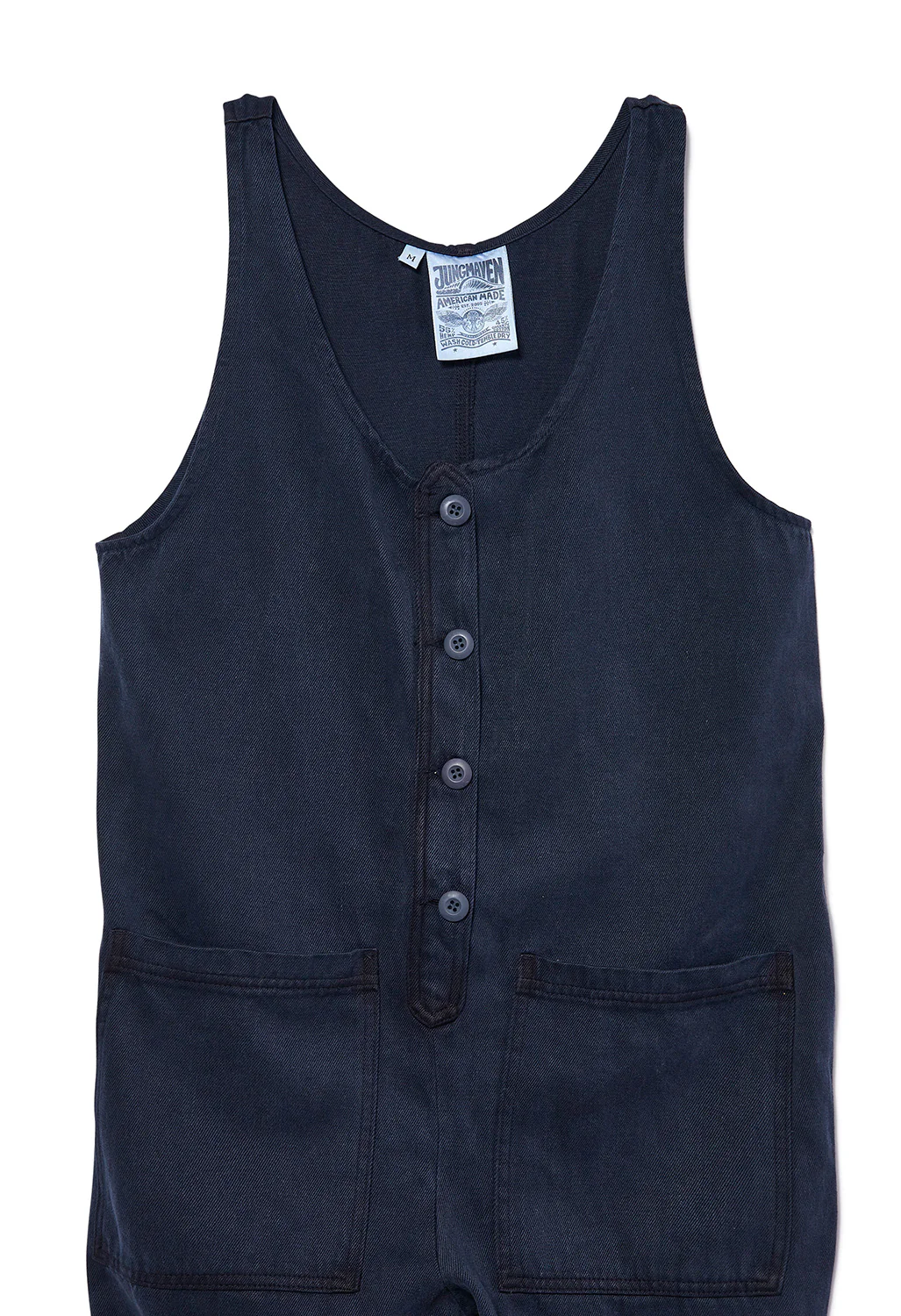 Jungmaven’s play on the jumpsuit is a laidback evocation of balmy summer days for the free of spirit. A hardy and washed-out blend of hemp and organic cotton, with two patch-on hand pockets and a button front.